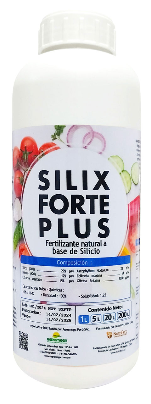 Es un Fertilizante natural a base de Silicio, Potasio, extracto de algas marinas y extractos vegetales, los cuales en conjunto promueven una cantidad importante de beneficios en los cultivos. El silicio es transportado rápidamente a las plantas a través del xilema optimizando las propiedades físicas y químicas del suelo y el desarrollo estructural y celular de las plantas.